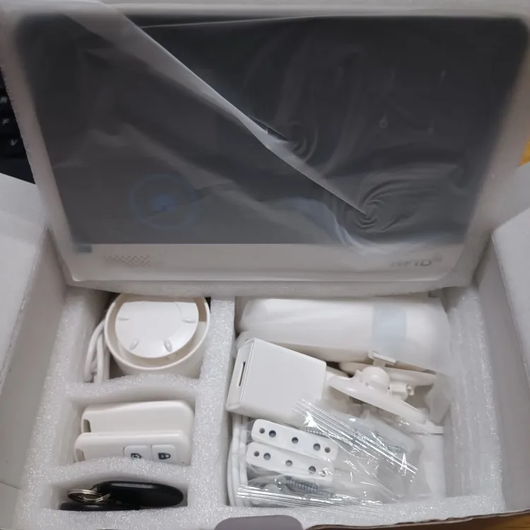The package arrived in very good time. Well packaged, very good quality and very good price. I installed 2 sirens (purchased seperatellt), several door magnets and pir's; also various remotes, (in addition to the ones supplied) and the rfid's. Everything as supplied works, as well as my older pur's and magnets. Top marks to seller.