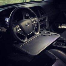 I am a manager that finds himself in the field quite a bit. I ordered this on a whim, and have since ordered a few for fellow managers, as gifts. The desk has fit almost every vehicle I have tried it in, and is just the right size for an iPad Pro in a Belkin Keyboard case. I have managed a laptop a few times as well. Oh, and you can eat lunch off of it as well, if you'd like. Just remove before driving. You have been warned.