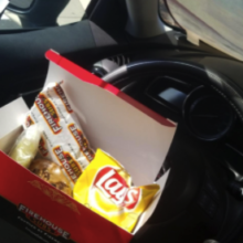 As an outside sales rep I sometimes feel like I live in my car. This dual purpose tray is a 'must have' if you need a well positioned mobile desk or a less awkward way to eat (and avoid wearing) your lunch. It's nice that both sides are functional... a food tray complete with cup holder on one side, and and a smooth flat writing surface on the other. You won't have to worry about getting grease or food residue on your paperwork! Also works well with small laptops or your iPad. Made of high-impact plastic, it won't melt or warp if you leave it sitting in your hot car... virtually indestructible. I can't imagine how I lived without one of these for so many years!