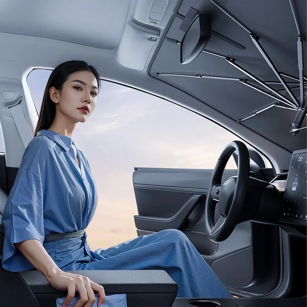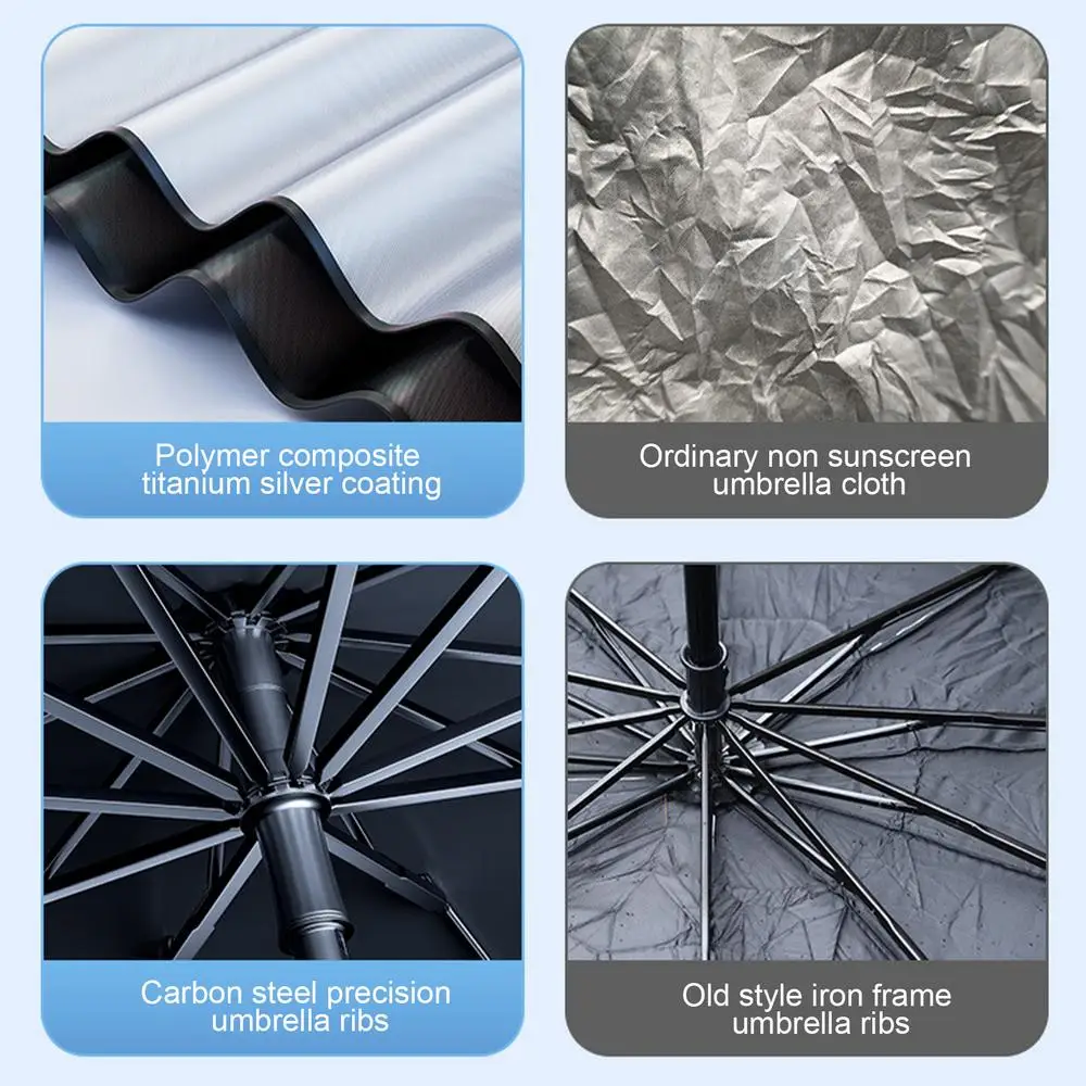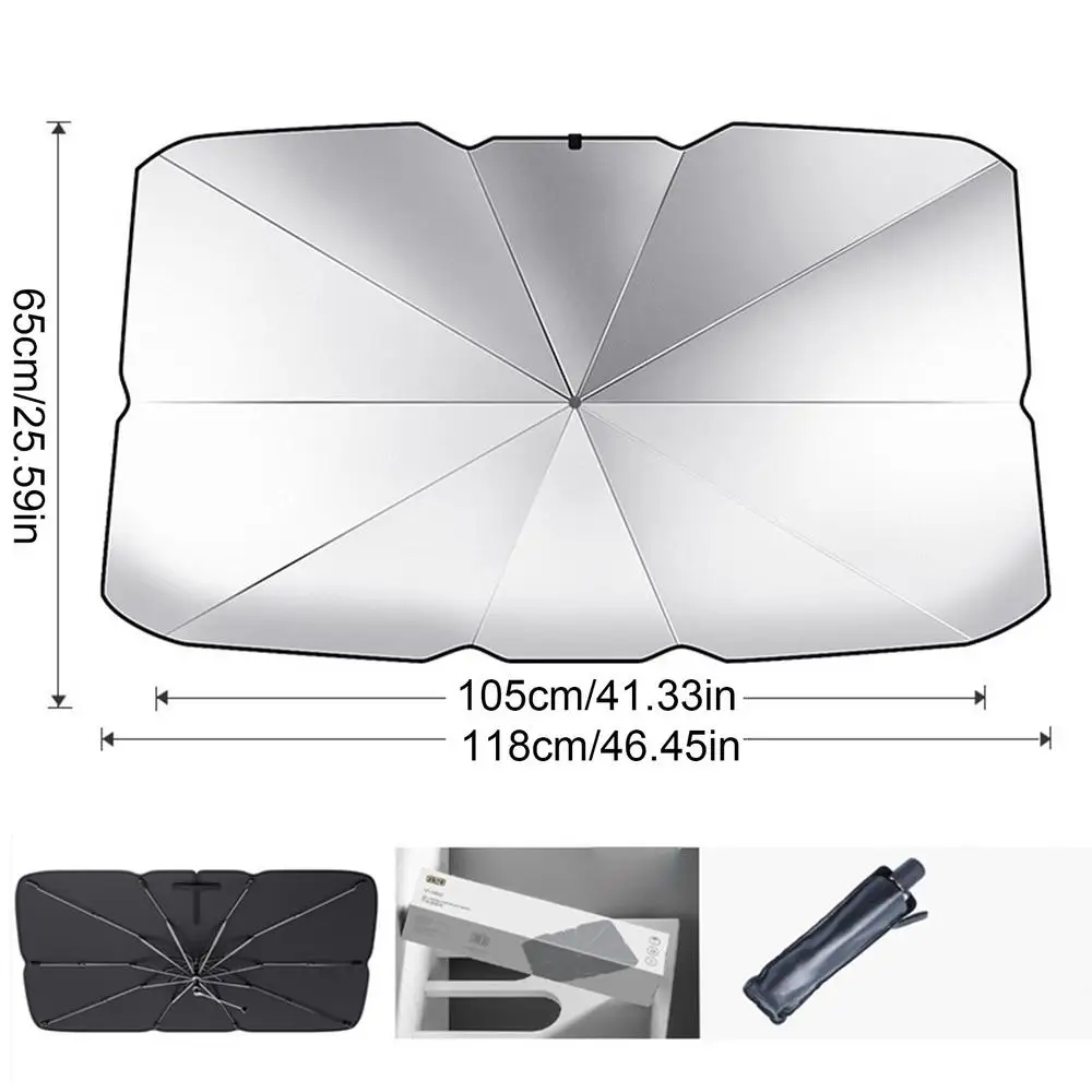 2.Optimum Thermal Regulation: By using a parasol-style sun shade, this car windshield umbrella controls temperatures below 30C in intense heat over 70C. Offering insulation and 99.9% UV protection.
