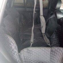 This dog cover is great! It fits exactly and the clips are really strong. Its adjustable so my dog wouldn't be able to pull it down!. The bottom is made from special rubber so the dog dont slip during driving.