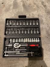 - Features: Metric/standard sockets, ratchet, torque wrench, portable box.