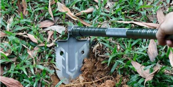 Revised review, moved from 3 stars to 5 stars. Good compact shovel. Knife is so well hidden I thought it wasnt included. After a few weeks and some use heard some rattling, opened her up and Knife. 5stars never leave home without it.