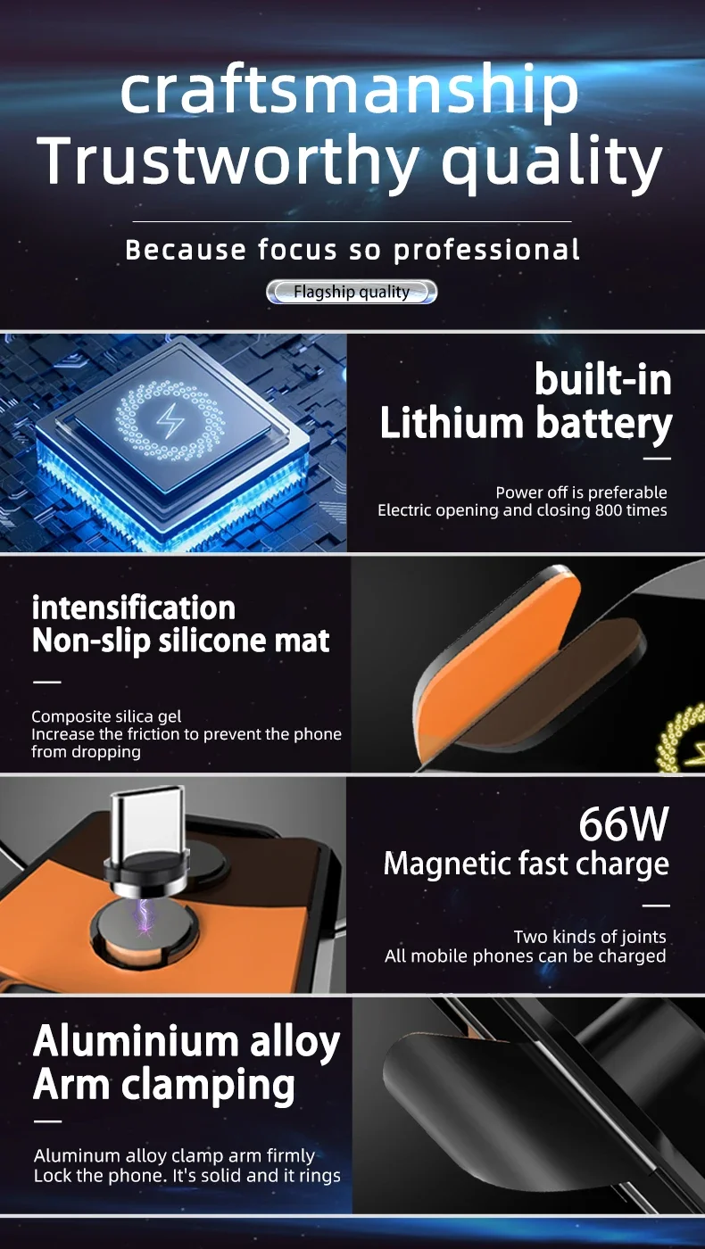 Car Phone Holder Stand 66W Wireless Fast Charging StationCharger Auto Infrared Induction for iPhone 15 14 13 12 Samsung Xiaomi