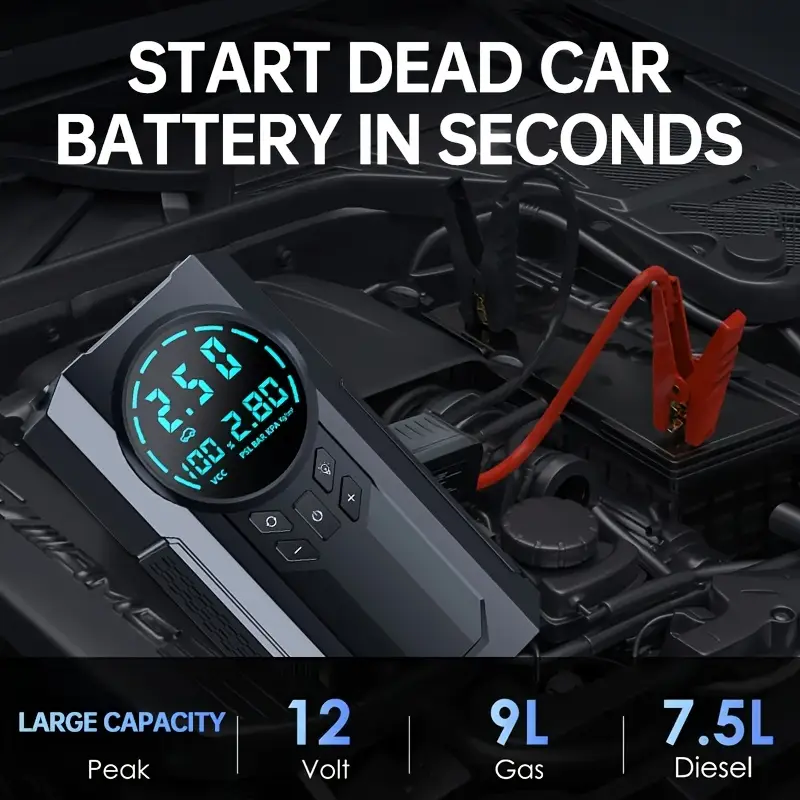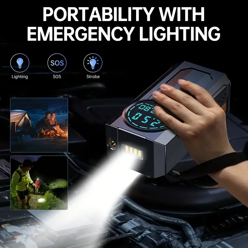 Power up with the Best Portable Battery Charger for Car! This electric jump starter with compressor and phone charger revives dead batteries and vehicles—perfect for cars or EVs. Grab this cordless starter now and stay ready for any jump or inflate emergency!