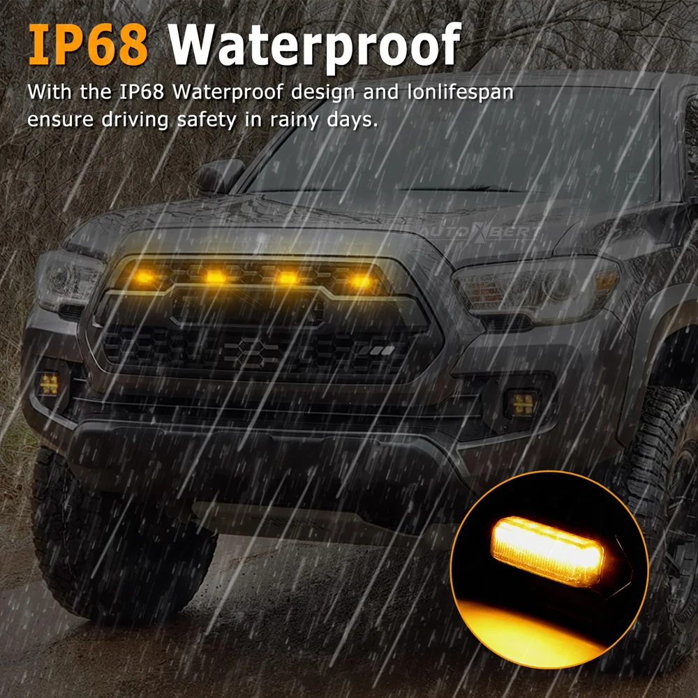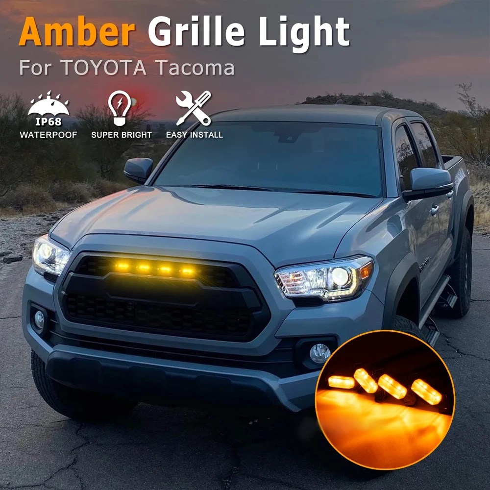 Give your Toyota Tacoma a unique look with upgraded amber LED front grille lighting for improved nighttime visibility, safety, and style!