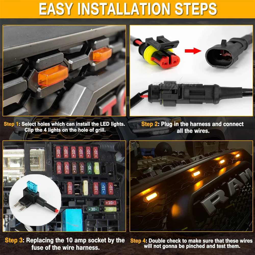 Please note that if the LED grille lights come loose in certain slots/openings, please apply the small piece of double-sided tape provided in the package.